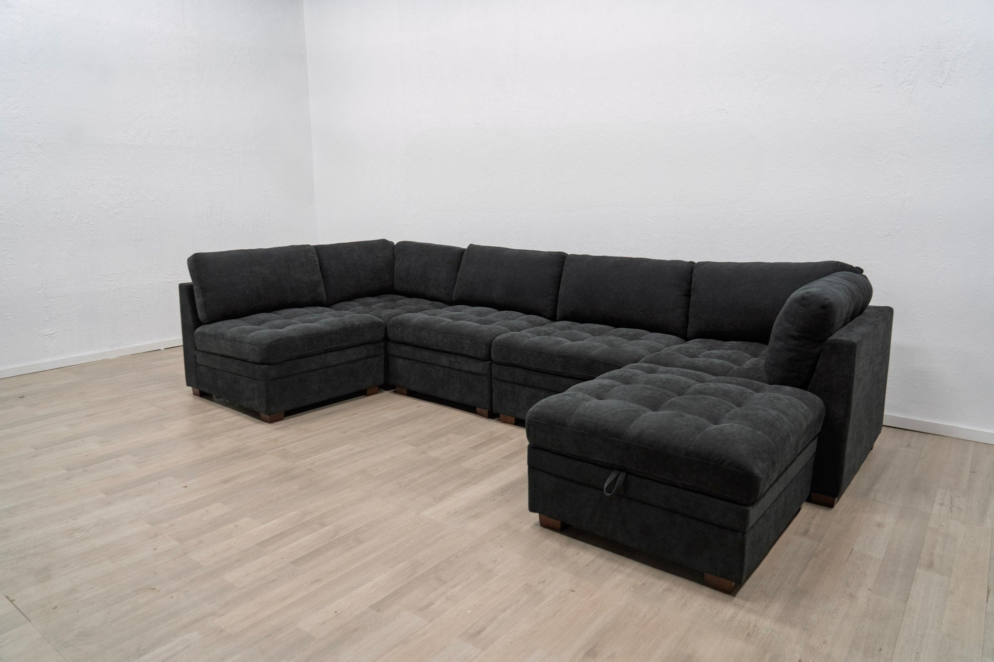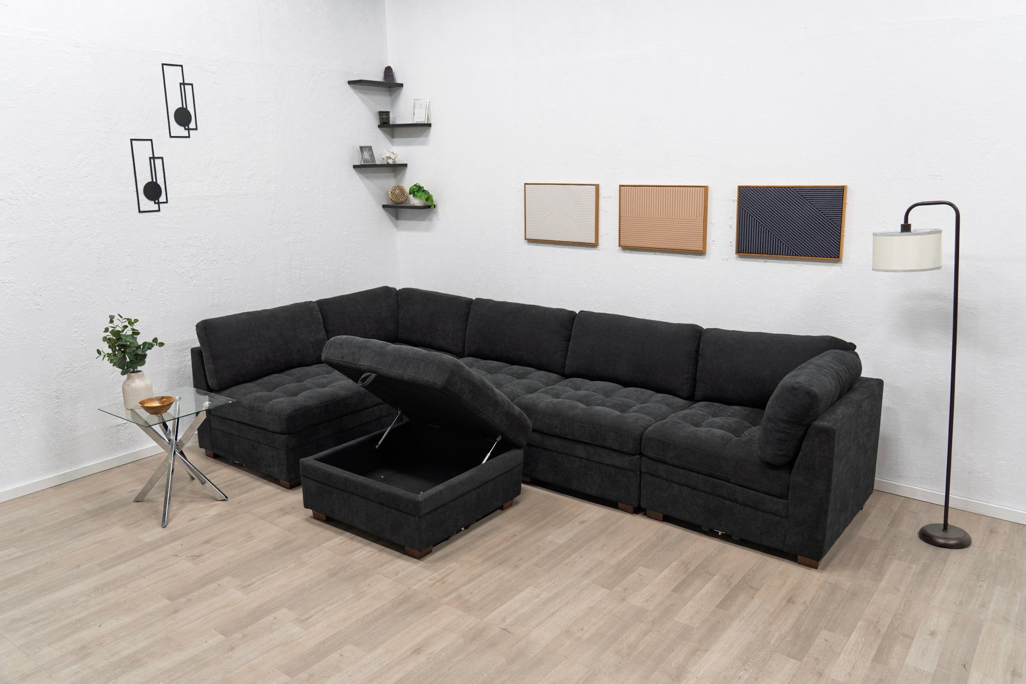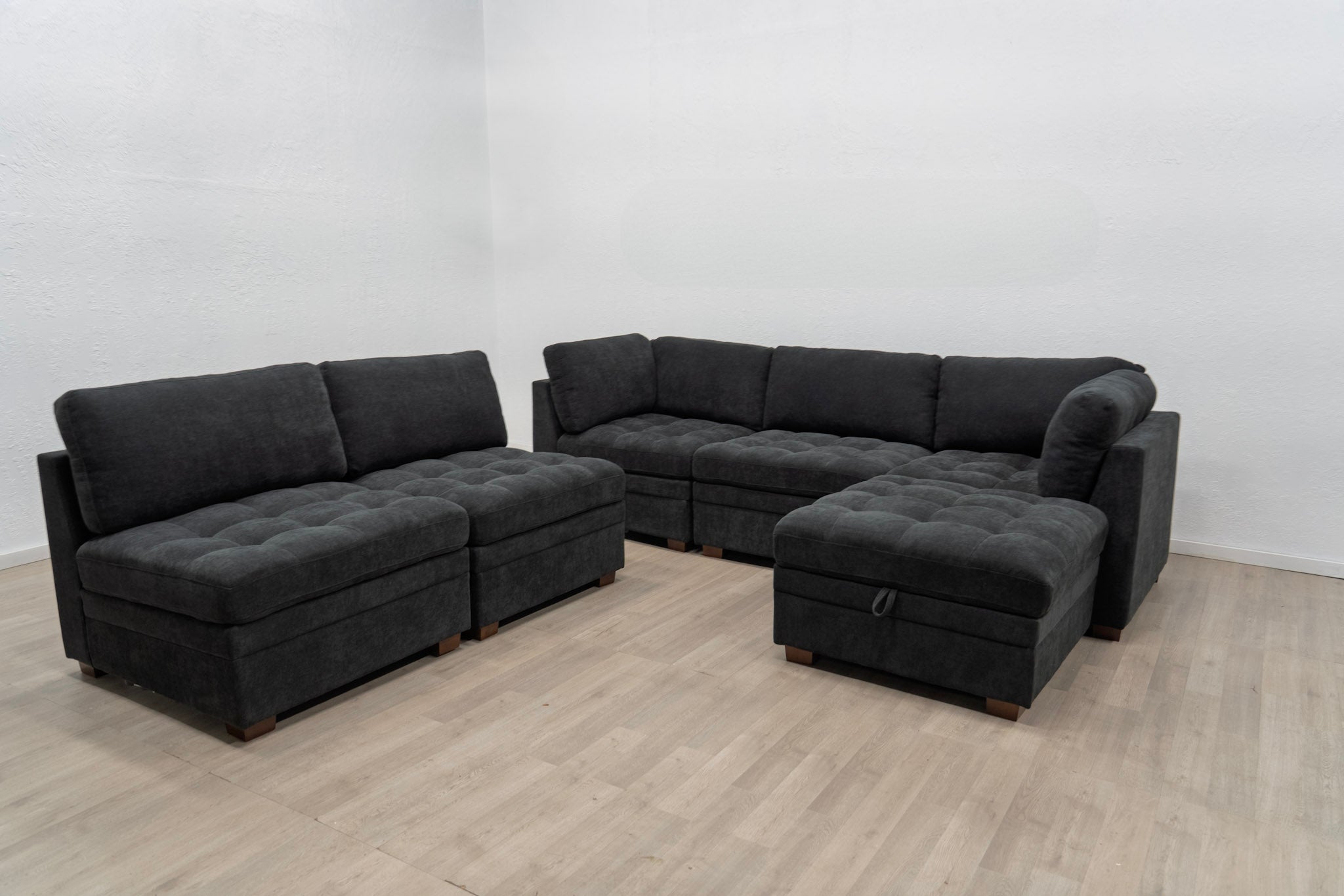 I was nervous about buying a sofa online, but this sectional exceeded expectations. The black fabric gives it a modern, sleek look, and the comfort is spot-on for both lounging and hosting. Being able to reconfigure it depending on the space is a huge bonus.
